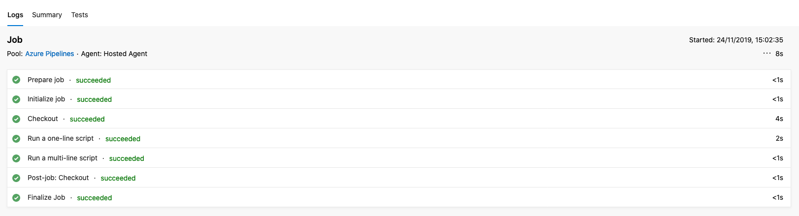 A pipeline contains one or more jobs. A job contains a list of steps that run sequentially as a unit.