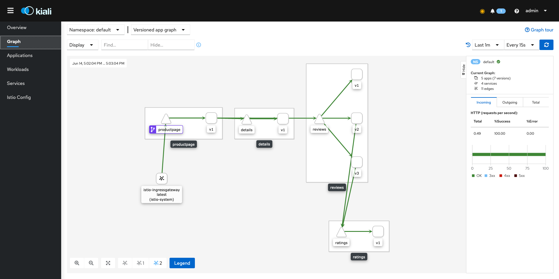 istio-system kiali-d45468dc4-gv2qx 1/1 Running 0 6m17s