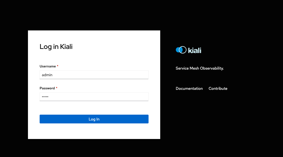 $ KIALI_USERNAME=$(read -p 'Kiali Username: ' uval && echo -n $uval | base64)