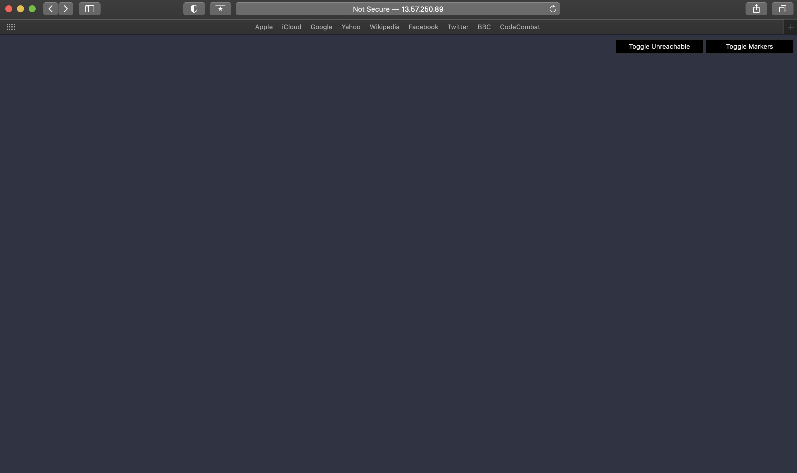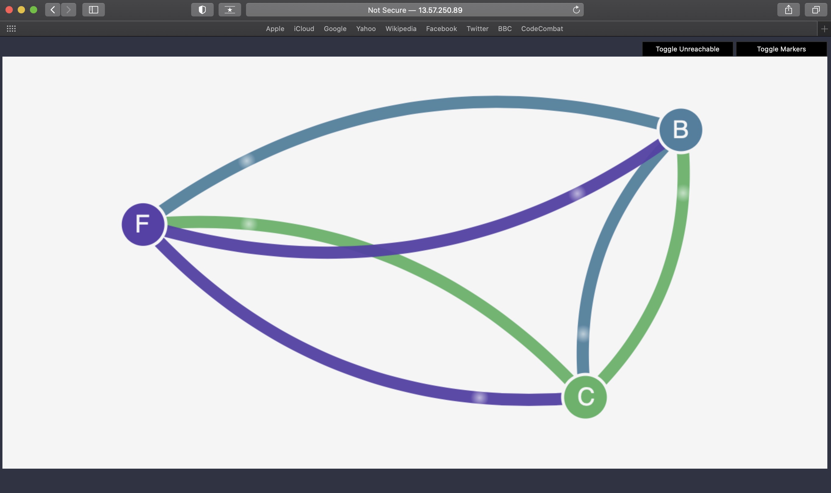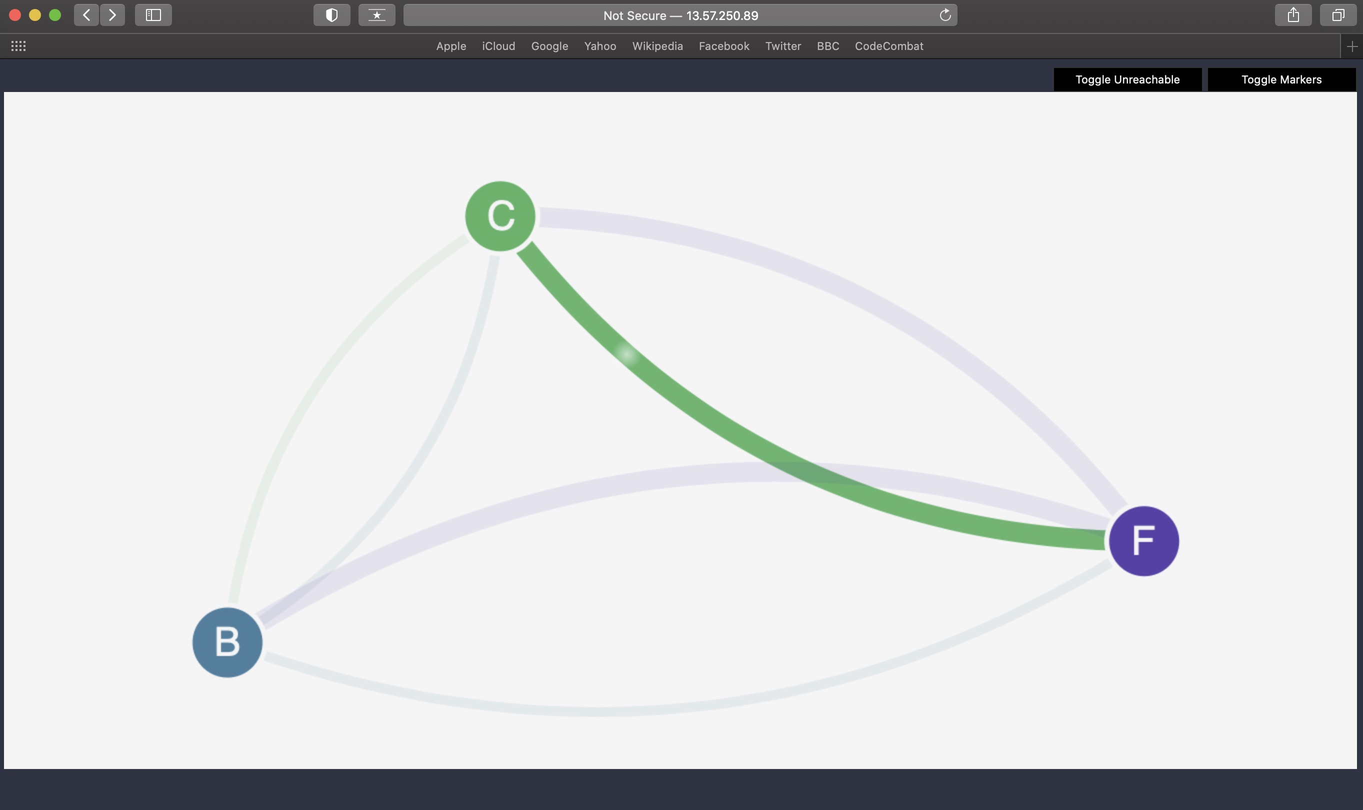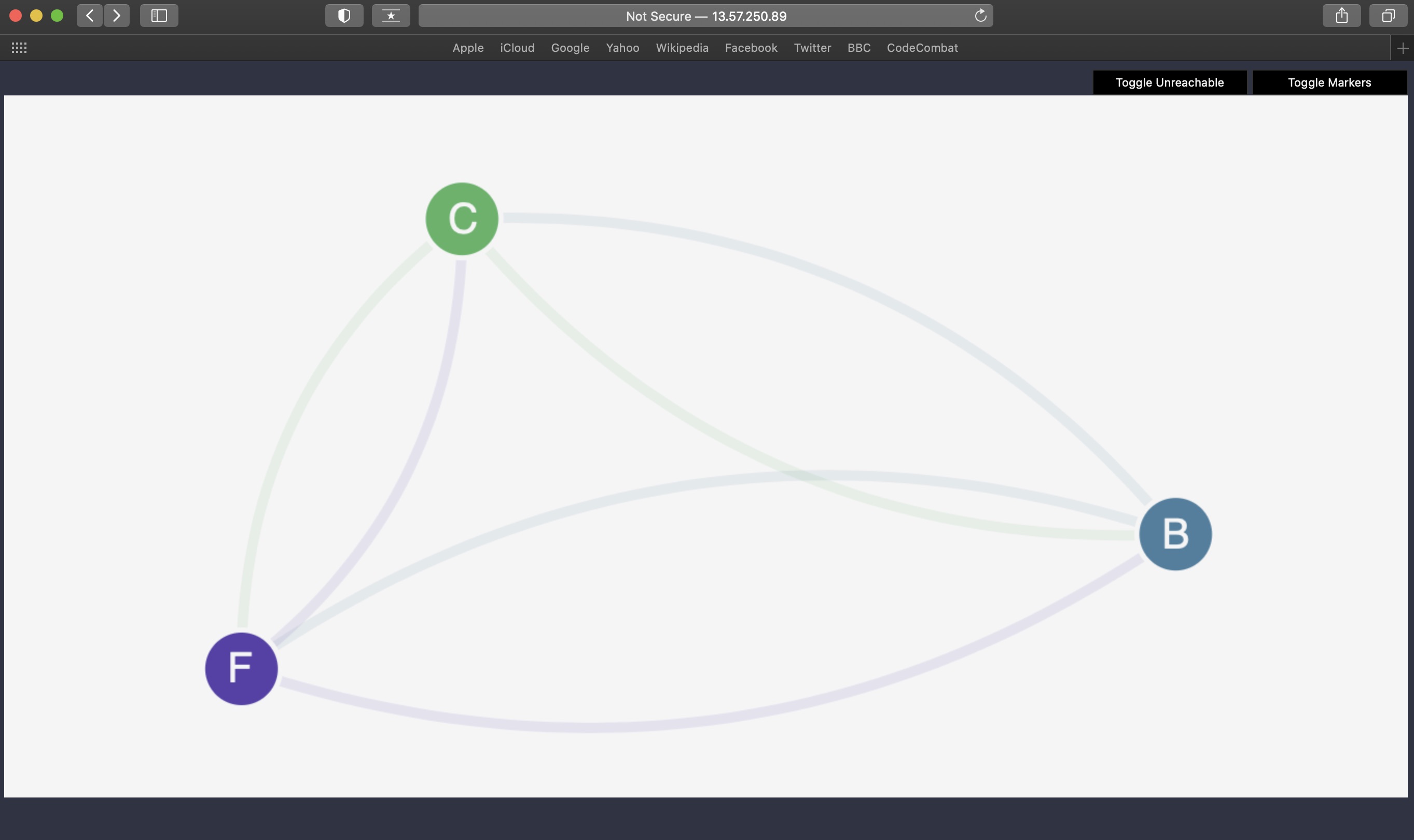 Once all the pods are started, they should have full connectivity. We can see this by visiting the UI. Each service is represented by a single node in the graph.